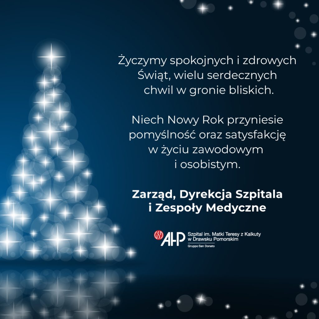 Z okazji Świąt Bożego Narodzenia i Nowego Roku dyrekcja, zespoły medyczne Szpitala w Drawsku Pomorskim American Heart of Poland składają najserdeczniejsze życzenia. Niech ten wyjątkowy czas napełni Wasze serca radością, spokojem i miłością, a nadchodzący 2026 rok będzie pełen sukcesów w realizacji postanowień – zdrowej diety, regularnej aktywności fizycznej i czasu na zasłużony odpoczynek. Życzymy, abyście z łatwością wprowadzali te zmiany do codzienności, dbając zarówno o siebie, jak i swoich bliskich. Niech te święta będą czasem refleksji i odpoczynku